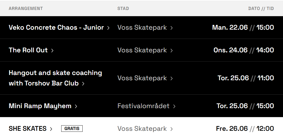 Enten du står på brettet eller ser på frå sidelinja, bringer skateboarding ekte skatekultur og rå energi til festivalen.